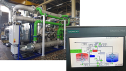Pour la désorption, l’installation utilise la chaleur dégagée lors de la compression sur les turbocompresseurs non lubrifiés (1e phase de la récupération de chaleur). Grâce à l’intégration d’un échangeur de chaleur vapeur/air en aval, le nouveau système atteint des PRSP meilleurs que -30 °C. Par le biais de la conduite principale, l’air comprimé traité est amené jusqu’à la production et vient alimenter le site en air d’usine.