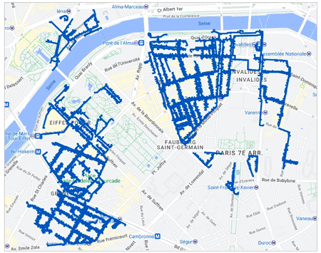 1 Les zones concernées par le service de flexibilité locle : les 7ème, 15ème et 16ème arrondissements de Paris (Source du fond de carte : Google) :