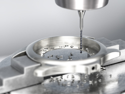 Everstampi a sélectionné cinq diamètres différents, entre 0.5 et 0.9 mm, tous avec la capacité de percer des trous d’une profondeur allant jusqu’à neuf fois le diamètre (xD). Everstampi ayant choisi ses outils sans arrosage (ce qui faciliterait normalement l’élimination des copeaux), Sandvik Coromant a suggéré à l’entreprise de privilégier le perçage avec débourrage pour plus d’efficacité.