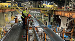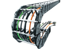 Aussitôt dit, aussitôt fait : Les experts de TSUBAKI KABELSCHLEPP ont construit et livré une structure de base spécifique au client. Les interfaces de l’ancien câble de levage ont ainsi pu être réutilisées et la nouvelle chaîne porte-câbles a pu être montée sans problème. Deux chaînes du type MC0950 positionnées en tête-bêche avec Point mobile replongeant ont été intégrés pour cette l’application. Les câbles électriques et de données ont ainsi pu être guidés séparément ce qui a permis d’éviter des interférences éventuelles. L’équipe de service de TSUBAKI KABELSCHLEPP a monté et mis en œuvre le système complet les chaînes, les câbles, une goulotte de guidage, sur la structure et on effectué le raccord au point mobile pendant l’arrêt de l’installation pour les fêtes de Noël.