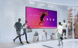 Sur l’espace retail, sera également présenté le LG LWBC : des panneaux LED indoor d’une luminosité de 3 500 nits qui assurent une excellente qualité d’image, même sous une forte exposition. Grâce à l’assemblage des cabinets LED, l’écran peut être posé à plat ou former un angle à 90° épousant ainsi le coin d’un mur. Cette nouvelle solution d’écran en vitrine permet de sortir des dimensions classiques des produits haute luminosité en LCD qu’on installait en vitrine (49, 55, 75’’) afin d’avoir une meilleure visibilité.