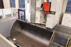 C’est ce que confirme Matthias Henning, directeur de la production du site allemand de Komatsu, en illustrant le gain de productivité par l’exemple des ajustements H8 de plus de 100 mm de diamètre qui doivent être régulièrement réalisés dans diverses pales : "Rien que le temps de fraisage était d’environ 45 minutes sur la machine précédente. L’Ecomill le fait en 17 minutes". De plus, la machine à montant mobile minimise les temps d’arrêt, car elle usine un composant d’un côté pendant que l’opérateur de la machine prépare le composant suivant de l’autre côté.