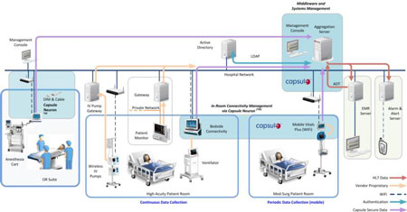 Capsule, leader mondial des solutions de connectivité des appareils biomédicaux, permet grâce à ses solutions de faire une remontée automatique des constantes au sein du dossier patient informatisé (DPI) depuis le chevet du patient.