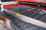 Plus innovante peut-être : une table de découpe intégrée, dont les lames amovibles donnent accès à la récupération des chutes. Le LS1000XP devient vraiment un support de travail dont tous les outils sont à portée de main.
