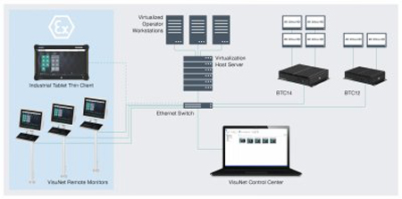La gamme de produits comporte aussi des clients légers à boîtier renforcé destinés aux salles de commande et aux armoires électriques. Par ailleurs, les clients légers pour tablette de Pepperl+Fuchs offrent une gamme complète pour les systèmes de commande des procédés virtualisés et classiques. Avec le logiciel VisuNet Control Center, les clients légers peuvent être gérés en toute simplicité de manière centralisée, de la zone 1 jusqu’à la salle de commande.