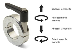 Ces bagues d’arrêt permettent à l’utilisateur de monter, de démonter et de repositionner la bague d’arrêt sans outils complémentaires. L’utilisateur actionne simplement le levier pour desserrer et serrer la bague d’arrêt.