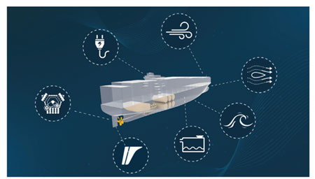 En complément des données issues de la modélisation numérique (CFD - Computational Fluid Dynamics), déjà prises en compte par les versions précédentes de la solution, la nouvelle mouture de la plateforme logicielle utilise des jumeaux numériques de navires créés à partir des données de capteurs collectées à bord, et des caractéristiques physiques de la coque.