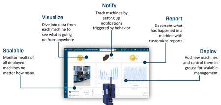 Avec Talk2M® Visualization, les fabricants bénéficient d’un moyen rapide et économique de visualiser les données des machines et d’accéder aux données historiques ainsi qu’à des notifications et rapports via des tableaux de bord. Prête à l’emploi, cette solution IoT simplifie et optimise les processus décisionnels liés aux machines.