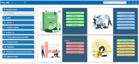 Gestion Electronique des Documents (GED), audits, non-conformités, résolution de problèmes (8D, PDCA, QRQC…), mise en place de plan d’actions, retours d’expérience… Cette suite logicielle a vocation à couvrir l’ensemble des besoins d’un Système de Management par la Qualité Totale - chaque module pouvant être intégré indépendamment ou combiné au sein d’une unique technologie. Les informations saisies et enregistrées dans la base de données étant tracées, vérifiées et facilement accessibles, TEEXMA® for Quality assure un transfert de connaissances efficient entre les parties prenantes. Cela s’avère particulièrement utile dans le cadre de la validation de la production, passant généralement par un système de contrôle qualité, que les entreprises mettent en place pour justifier le respect d’un certain nombre de normes (à commencer par l’ISO 9001).