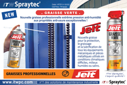 Une graisse extrême pression anti-humidité aux propriétés anti-usure exceptionnelles : Développée par ITW Spraytec sous la marque JELT, GRAISSE VERTE est une nouvelle graisse professionnelle destinée spécifiquement à la protection, au graissage et à la lubrification de tous les équipements, mécanismes et pièces métalliques utilisés en conditions climatiques difficiles, milieux humides ou salins.