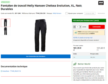 La gamme Better World de RS est très facile à identifier : chaque produit de la gamme est signalé par une icône Better World et, d’un simple clic, les clients peuvent accéder à la certification ou au label du produit , délivrés par des organismes compétents.