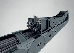 Grâce à sa conception qui permet un montage simple, cette chaîne porte-câbles offre d’énormes avantages, notamment en tant que système TOTALTRAX® prêt à l’emploi ou en tant que TSUBAKI KABELSCHLEPP offre également des goulottes de guidage en aluminium et en acier ainsi que des points mobiles, des modules de toits jusqu’aux composants de Condition Monitoring.