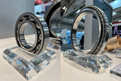 « La version classique des roulements à rouleaux cylindriques et des roulements rainurés à billes isolés électriquement présente un revêtement en oxyde céramique », explique M. Klaus Grissenberger, ingénieur d’application chez NKE à Steyr. « Ce revêtement constitue une protection simple et efficace contre les dommages causés aux roulements par le passage d’un courant électrique à travers un roulement ». L’isolation réduit considérablement le risque de chemins de roulement endommagés et de vieillissement prématuré du lubrifiant et elle présente une résistance diélectrique de 1 000 V à 3 000 V en tension continue ou alternative selon le cas. Les roulements isolés électriquement ont les mêmes dimensions et caractéristiques techniques que les roulements traditionnels, ce qui permet de les remplacer facilement. Les versions disponibles sont des roulements avec isolation sur la bague extérieure (SQ77) ou sur la bague intérieure (SQ77E).