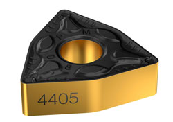 La nuance GC4405 convient pour l’ébauche continue jusqu’à la semi-finition dans des conditions stables et pour une longue durée de coupe. Elle convient à l’usinage grande avance avec des géométries moyennes, d’ébauche ou wiper dans les aciers durs supérieurs à 300 HB ou à l’usinage grande avance et/ou grande vitesse dans les aciers plus tendres inférieurs à 300 HB.