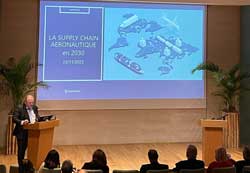 Marc Vales, Directeur des programmes spatiaux de Dassault Aviation, a partagé sa vision d’une révolution spatiale qui n’est plus uniquement une question de prestige mais également une nécessité poussée par deux principaux marchés : les données (développement de constellations de satellites pour accès à la donnée par le spatial) et l’énergie (focalisation de l’énergie solaire dans l’espace pour maximiser sa récupération sur Terre), qui impliquent le développement de nouvelles activités : carburants alternatifs, ressources réutilisables, fusées réutilisables, station orbitale, lunaire, martienne, assemblage, MRO, stockage de données, développements applicatifs… et autant d’opportunités à saisir pour les industriels et les acteurs de la supply chain.