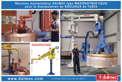 Ciblant principalement les secteurs industriels du bâtiment, de la distribution de matériaux de construction, du métal, et tout type de production de tubes, Dalmec présente un nouveau manipulateur industriel de type MAXIPARTNER EQUO en exécution sur colonne, conçu pour permettre des opérations de manipulations aisées de rouleaux de tubes, de diamètres, de poids et de dimensions variables, y compris les plus encombrants !