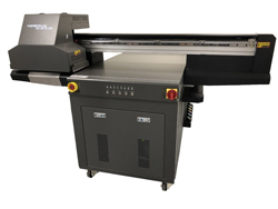 L’imprimante UV 9075 GH a une surface d’impression de 900 x 750 mm – 200 mm maxi de hauteur (existe en format 1300 x 1500 mm – 150 mm de hauteur). Le point innovant de l’UV 9075 GH est qu’elle est équipée de têtes industrielles Ricoh GH2220, assurant une grande vitesse d’impression.