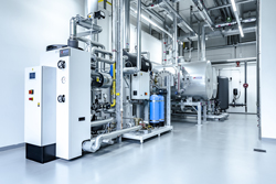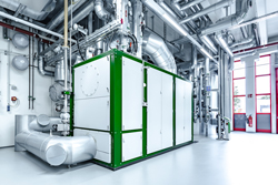 Le banc d’essai à la vapeur est intégré dans une centrale énergétique ultra-moderne avec centrale de cogénération et production combinée de chaleur et d’énergie électrique. La configuration des installations, parfaitement adaptée aux besoins de l’entreprise, permet d’alimenter en électricité et en énergie thermique l’ensemble du site de Schubert & Salzer à Ingolstadt, et ce, dans le respect de l’environnement. L’énergie thermique est utilisée sous forme de chaleur ou est transformée en froid par une installation frigorifique à absorption, afin de climatiser les locaux. Un accumulateur stratifié permet par ailleurs d’augmenter le rendement et d’exploiter la chaleur et le froid en fonction des besoins.