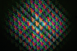 D’autres entraînements de FAULHABER sont encore employés dans le module de réseau de diffraction. Le réseau de diffraction est un élément optique qui utilise la déviation des rayons lumineux lorsqu’ils traversent des fentes très fines. Outre des faisceaux et des graphiques, un projecteur laser peut également produire des motifs et des effets variés, tels qu’une sorte d’aurore boréale artificielle ou les formes abstraites et flottantes du projet « Destructive Observation Field » (Champ d’observation destructeur) de Robert Henke : un objet lumineux en constante évolution qui ressemble à un mélange de brouillard cosmique et de structure cellulaire biologique et reflète en quelque sorte le microcosme et le macrocosme. Les effets peuvent être mis en scène non seulement sur un écran de projection, mais aussi en suspension libre dans l’espace.