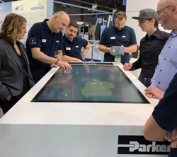 La table interactive sur l’hydrogène permet aux visiteurs d’explorer l’intérieur d’un électrolyseur et de découvrir plus en détails tous les points d’applications où sont utilisés les produits Parker. Ces produits vont des plus petits composants, comme les coupleurs, les raccords de tubes et les capteurs, aux plus importants, tels que les générateurs d’azote, les refroidisseurs et les sécheurs. Une fois ces composants identifiés, les utilisateurs peuvent en apprendre plus sur les principaux avantages de chacun d’entre eux et sur la manière dont ils pourraient répondre aux besoins en hydrogène. La table interactive permettra aux visiteurs de découvrir les produits Parker sous un nouvel angle.