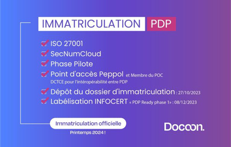 À ce stade, et avec un dossier déposé le 27 octobre 2023 pour sa demande d’immatriculation auprès de la DGFIP, Docoon est en très bonne position pour être l’un des acteurs majeurs de la réforme et permettre aux entreprises d’être en conformité. En effet, les premières certifications PDP devraient voir le jour au second trimestre 2024.