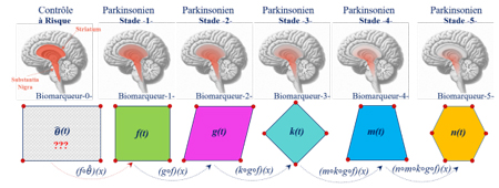 La recherche ambitionne grâce à un algorithme d’apprentissage profond (deep learning) et l’analyse des images cérébrales de détecter ces formes spécifiques et de découvrir la forme du « Biomarqueur-0 », représenté dans le schéma sous la forme d’un rectangle et qui serait l’état potentiel avant l’apparition des symptômes de Parkinson et qui pourrait indiquer un risque précoce de développer la maladie. L’utilisation de ces technologies avancées permettra une évaluation précise et automatisée de l’état de progression de la maladie, bien avant que les symptômes ne deviennent apparents pour les patients et les médecins.
