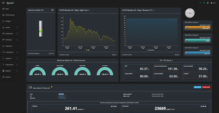 Les états machines, associés aux données de comptage permettent de calculer instantanément les indicateurs de TRS et de FMD. L’application permet également de collecter des données issues d’objets connectés pour disposer de toutes les informations liées à l’environnement de production (température, pression d’air, consommation électrique, ...).