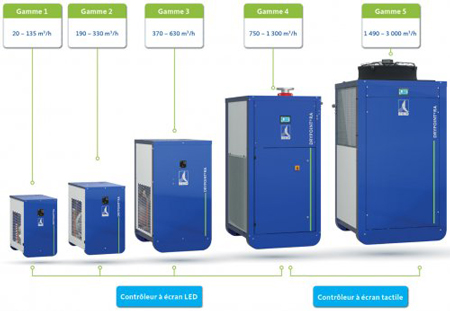 Les nouveaux systèmes sont proposés en cinq gammes différentes, offrant des capacités comprises entre 20 m³/h et 3 000 m³/h et déclinées en deux séries distinctes, l’une dotée d’un condenseur avec refroidissement à air (les AC, Air Cooled) et l’autre, d’un condenseur avec refroidissement à eau (les WC, Water Cooled).