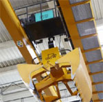 Le déplacement du pont roulant sur une longueur de 30 m, une largeur de 16 m et une hauteur de 13 m est parfaitement sécurisé, grâce à pas moins d’une centaine de capteurs, codeurs absolus et des fins de courses à galet. Pour encore plus de sécurité, tous les dispositifs sont doublés et toute l’intelligence embarquée du pont roulant communique avec les opérateurs. Outil indispensable au fonctionnement de cette chaufferie, le pont roulant doit apporter une productivité de 140 m3/h de matière transportée. Pour satisfaire à ce cahier des charges, la vitesse de levage est de 20 m/mn, et la vitesse de déplacement horizontale de 63 m/mn. La vitesse variable en montée/descente comme en translation a été retenue, car elle évite les pointes de courant tout en permettant des démarrages en douceur et limite le balancement de la charge lors des transferts. De même, la commande sans fil à été retenue, pour une simplification des opérations manuelles.