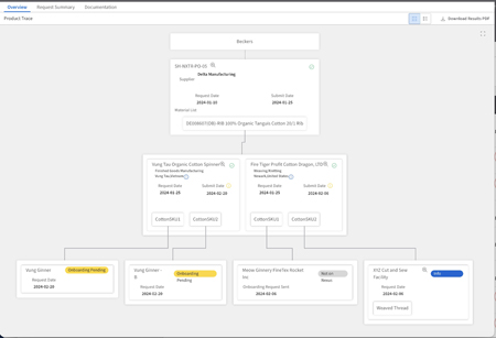 L’application Map and Trace a été co-développée avec le leader de son secteur, Burton Snowboards, dans le but d’aider les entreprises à « relier les points » entre les fournisseurs, et ceux de leurs propres fournisseurs ainsi qu’avec les enregistrements transactionnels qui étayent la chaîne de traçabilité.