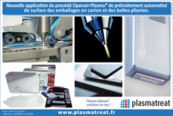 Le procédé de traitement Openair-Plasma® offre quant à lui de nombreux avantages dans la production et la transformation de carton et de boîtes pliantes. Ceux-ci incluent la rentabilité, une sélection élargie de matériaux, des options de traitement sélectif ou complet et une liaison structurelle fiable des matériaux.
