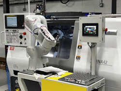 Sur le tour de reprise à haute précision et robotisé Citizen-Miyano GN-3200, les pièces sont chargées/déchargées par un système d’automatisation flexible avec portique ultra-rapide. Le temps de chargement de chaque pièce est de 3,5 secondes (de copeau à copeau). Concernant le tour Citizen-Cincom A320, il a été équipé d’un chargeur intégré par Citizen Machinery France . En remplaçant le bras de l’homme par un robot, l’automatisation répond au souhait du dirigeant. L’opérateur se consacre à des tâches plus intéressantes et valorisantes comme le réglage des machines et le contrôle.
