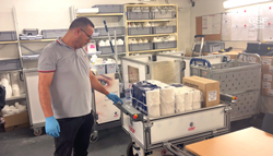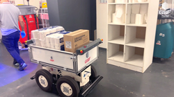 L’EffiBOT parcourt le site en suivant l’agent qui charge les produits nécessaires à sa mission sur le plateau de l’AMR1.