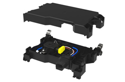 Installé sous le tableau de bord de la cabine, le module Pyro est principalement composé d’un coupe batterie et d’un connecteur d’amorce de type squib. Sa fonction est de déconnecter le système électrique en cas d’accident. En effet, si l’airbag se déploie, le connecteur squib associé active immédiatement le coupe batterie.