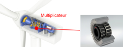 La production en série et la livraison des roulements haute performance nouvellement développés sont imminentes. La décision de choisir la nouvelle génération de roulements à rouleaux NSK reposait sur plusieurs facteurs clés. Tout d’abord, les roulements offrent une augmentation de la capacité de charge d’environ 25% par rapport au produit conventionnel, en optimisant le profil bombé des rouleaux (légère forme arquée évitant la concentration des contraintes aux extrémités des rouleaux). Les nouveaux roulements bénéficient également d’une durée de vie supérieure tout en étant plus légers ; c’est par conséquent la solution idéale pour diminuer les coûts de fabrication et de maintenance des grandes éoliennes.