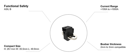 La conception de ce nouveau capteur haute performance s’inscrit dans la tendance de miniaturisation des composants contribuant à réduire le poids des véhicules et donc à étendre leur autonomie. SMU bénéficie d’un design compact. Il mesure seulement 29,1 mm (H) x 35,5 mm (W) x 49,9 mm (L). Sa conception, avec un busbar intégré, permet non seulement de réduire sa taille et d’améliorer sa précision, mais encore de s’adapter à des dimensions de busbar différentes (de 2 à 3 mm).