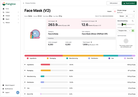 Leur intelligence artificielle leur permet de faire des ACV (Analyse de Cycle de Vie*) complètes sur 100% des produits de leurs clients en quelques jours, puis ils utilisent cette mesure fine pour générer automatiquement 90% du bilan carbone (scope 1-2-3), ultra granulaire, en quelques semaines et surtout à moindre effort. Une fois la mesure et le reporting faits, ils permettent d’accélérer et d’optimiser la réduction des émissions. Ils font aussi de l’écoconception automatisée , incluant du benchmarking (au niveau formule, pack, fabrication, etc).