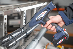 HellermannTyton, fabricant leader des produits de fixation, d’identification, de protection des câbles et de leurs outils de pose, oriente la conception de ses outils vers un usage pratique et sécurisé, parfaitement adapté aux conditions de travail sur le terrain. Son dernier outil, le ProCut, alimenté par batterie, est dédié au serrage et à la coupe des colliers de serrage. Contrairement à un outil manuel de pose classique qui nécessite d’appuyer plusieurs fois sur une gâchette pour le serrage d’un seul collier, le ProCut est équipé d’une gâchette électronique qui déclenche la tension et la coupe de la bande dépassante d’une simple pression. Il suffit d’insérer un collier de serrage, d’appuyer légèrement sur la gâchette et l’outil se met en tension et coupe avec précision, sans aucun à-coup.