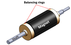 Une autre source courante de vibrations, exacerbée par la stérilisation par autoclave, est le mouvement des aimants. Les aimants sont généralement monté sur l’arbre à l’aide d’un processus de collage. Pour obtenir une force de collage suffisante, il doit y avoir un jeu minimum entre l’arbre et le diamètre intérieur de l’aimant. La stérilisation par autoclave peut avoir une incidence négative sur l’adhérence de la colle, ce qui peut entraîner un mouvement de l’aimant. Dans ce cas, un offset de l’aimant par rapport à l’axe du moteur, causé par un léger changement de position peut arriver. Ce qui peut provoquer des vibrations. Pour atténuer ce phénomène, les concepteurs de moteurs peuvent opter pour une conception d’arbre épaulé qui permet d’aligner et de guider le diamètre intérieur de l’aimant et de fournir une surface plus uniforme pour la distribution de la colle.