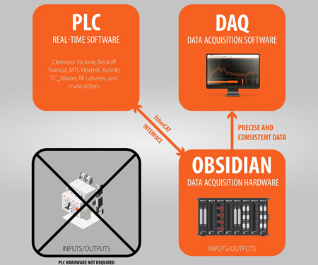 L’OBSIDIAN est un système polyvalent qui combine enregistreur de données, contrôle en temps réel et conditionnement de signaux pour diverses applications (bancs d’essais, mesures embarquées, surveillance à long terme). Il est compatible avec des cartes multivoies haut de gamme et différents capteurs (haute tension, courant, IEPE, thermocouple, RTD, jauges de contrainte), permettant des mesures jusqu’à 20 kS/s.