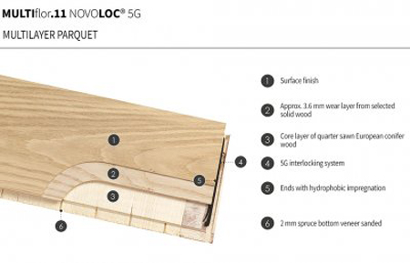 Tous les parquets ne sont pas identiques. Bien qu’il y est des différences non négligeables, le parquet multicouche est particulièrement populaire. Lors de sa fabrication, plusieurs aspects doivent être pris en compte afin d’obtenir un produit de qualité, durable et facile à utiliser. Le choix du bois, par exemple, influence la stabilité et l’aspect du parquet. Comme son nom l’indique, il se compose de plusieurs couches, en particulier d’une couche de support et d’une couche d’usure. Scheucher utilise l’épicéa ou le pin comme support. Une multitude de type de bois peuvent être utilisées pour la couche d’usure.