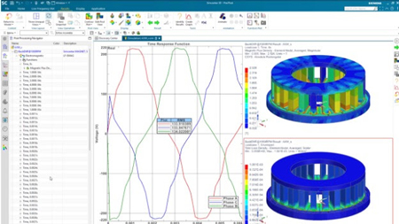 Simulation de moteurs à flux axial : Simcenter permet de concevoir et simuler plus rapidement des moteurs compacts à haute densité de puissance. Les ingénieurs peuvent rapidement créer des conceptions légères à l’aide du logiciel Simcenter™ E-Machine Design de Siemens, puis passer de façon transparente au logiciel Simcenter™ 3D de Siemens pour effectuer des simulations 3D permettant d’évaluer complètement les performances électromagnétiques, thermiques et mécaniques de leurs conceptions.