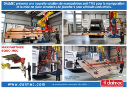 Dans ce cadre, Dalmec est heureuse de présenter un nouveau manipulateur de type MaxiPartner Equo MEC conçu sur-mesure pour assurer la prise, le déplacement, le positionnement et la dépose des planchers de véhicules industriels sur les lignes de montage.