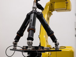 Le kit peut être utilisé facilement à différents endroits pour accélérer la mise en service des robots et procéder aux vérifications courantes. Il inclut le système de ballbar RCS L-90 qui améliore la précision des systèmes robotiques, réduit le temps de déploiement et permet de suivre l’état du robot. Cette technologie fonctionne avec un logiciel de coordination, RSC Software Suite, pour guider les utilisateurs de façon intuitive lors des tests et des opérations routinières. Le système à trois ballbars RCS T-90 peut être acheté en complément. Il comprend trois ballbars configurées en trépied, afin de permettre à l’opérateur du robot d’identifier la cause première de mauvaises performances et d’effectuer des essais plus poussés pour réunir des informations essentielles sur le robot. Il peut s’agir par exemple de repositionner des joints aux positions calculées, de récupérer un étalonnage ou de tracer un parcours-outil plus performant en 3D.