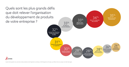 L’étude Aras 2025 met en évidence les principaux défis en matière de développement de produits qui motivent cette évolution : 35 % des entreprises citent les coûts de production comme leur principal obstacle, 34 % luttent contre la complexité des produits, tandis que la conformité réglementaire et l’accélération des délais de mise sur le marché préoccupent 33 % des dirigeants interrogés. Le développement durable reste important, 32 % des entreprises soulignant le rôle croissant qu’il joue dans la planification stratégique.