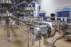 Les convoyeurs à chaîne de Fredriksons destinés à l’emballage alimentaire font appel à des moteurs asynchrones IE3 de NORD montés sur des réducteurs à engrenages cylindriques NORDBLOC.1® associé à un variateur de fréquence NORDAC ON. Les variateurs de fréquence décentralisés constituent une solution économique pour les environnements de production modernes. Ils couvrent une plage de puissance allant de 0,37 kW à 3,7 kW et se caractérisent par leur capacité d’enfichage complet, leur fonction plug-and-play, leur faible maintenance et leur grande fiabilité. Autres caractéristiques : l’Automate programmable embarqué et l’interface Ethernet intégrée. Les protocoles PROFINET, EtherNet/IP et EtherCAT peuvent être facilement définis via des paramètres. Outre STO et SS1, NORDAC ON proposera bientôt de nouvelles fonctions de sécurité fonctionnelle : SLS, SMS et SSM.