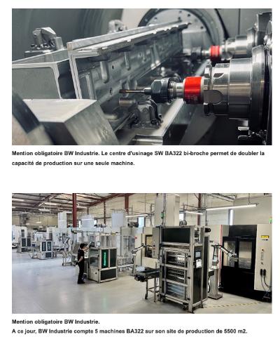 Située à Sarrebourg dans le Grand Est, l’entreprise BW Industrie a vu le jour en 2009. Spécialisée dans l’usinage de précision, elle est le fruit de l’alliance des deux co-fondateurs. Son nom regroupe le « B » de Philippe Boog -directeur technique- et le « W » de Laurent Wagner -directeur opérationnel. L’entreprise produit des éléments pour vérins pneumatiques, des composants hydrauliques, des circulateurs d’eau et de nombreuses pièces mécaniques pour des PME et grands groupes de ces secteurs. En 2021, période Covid, le duo de dirigeants fait un choix stratégique afin de répondre aux nouveaux besoins des donneurs d’ordres : la production de grandes séries de pièces en France. BW Industrie investit progressivement dans plusieurs centres d’usinage bi-broches SW. Objectif atteint : l’entreprise double sa capacité de production, obtient de nouveaux marchés et double son chiffre d’affaires.