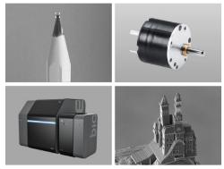 UpNano GmbH La taille des objets qui peuvent être fabriqués avec une imprimante NanoOne peut aller de moins de 150 nanomètres à plus de 40 millimètres. Quatre objectifs de différentes résolutions assurent une flexibilité maximale et le débit de plus de 450 millimètres cubes par heure constitue la base de la grande productivité. La précision du processus d’impression provient non seulement de la qualité de l’optique laser, mais aussi de la précision de l’orientation du substrat, lui-même étant fixé sur un support mobile.