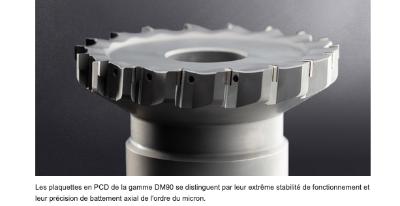 DM90 : du surfaçage ou du fraisage d`épaulements de pièces moulées sous pression en aluminium au surfaçage de surfaces de contact de différents métaux non ferreux en passant par l`usinage de composants de moteurs ou de boîtiers, les opérations de fraisage sans bavures sont essentielles. Les plaquettes PCD sont donc la référence en la matière. La gamme DM90 est spécialement conçue pour répondre à ces exigences avec des performances élevées.