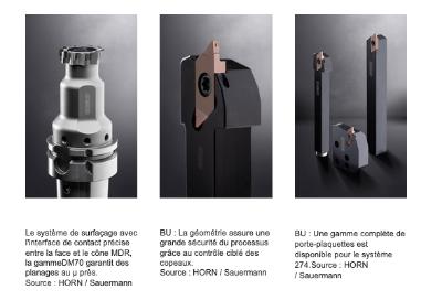 DM70 : HORN a développé cette série spécialement pour les opérations de surfaçage. Le système permet d’obtenir des qualités de fraisage et de surface élevées dans des plages de diamètres réduites. L’interface de contact précise entre la face et le cône MDR garantit des surfaçages de l’ordre du µ. Le remplacement simple et rapide de la fraise à montage PCD par un porte-outil en carbure est adapté aux processus de production allégés et aux installations de production automatisées.